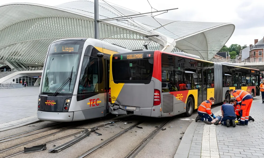 2026-03-1821 osób rannych w zderzeniu tramwaju z autobusem w Liège – ruch przywrócony, ale torowisko uszkodzone