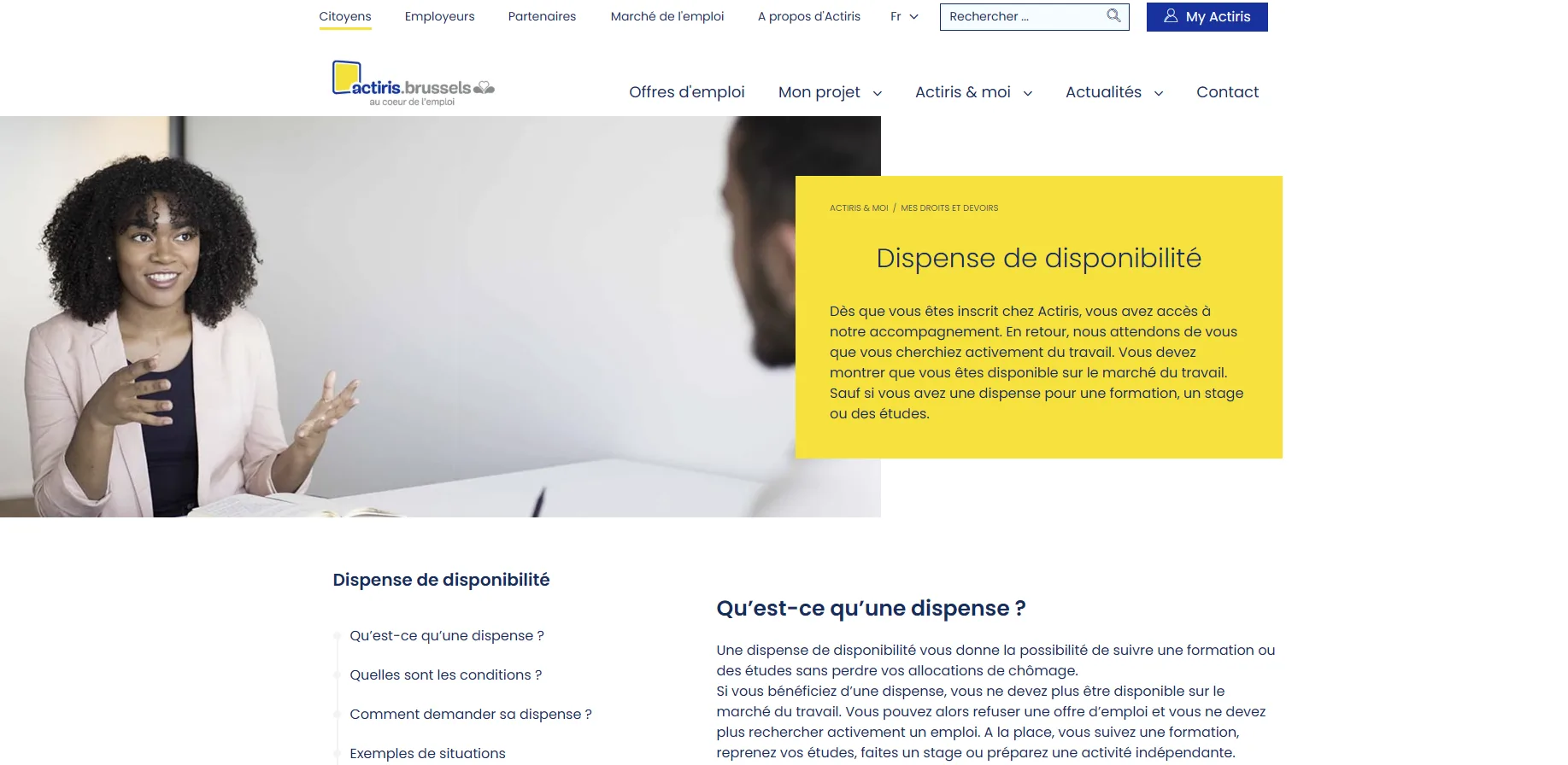 Actiris określiło konkretne warunki kwalifikacji do takiego szkolenia. Nauka, formacja lub staż muszą trwać co najmniej cztery tygodnie i obejmować średnio 20 godzin tygodniowo lub minimum 27 punktów ECTS. Zajęcia powinny odbywać się głównie od poniedziałku do piątku przed godziną 17:00. Zwolnienie z obowiązku dyspozycyjności utrzymuje się jedynie pod warunkiem pomyślnego ukończenia roku szkoleniowego – w przypadku niepowodzenia sankcja jest automatyczna.