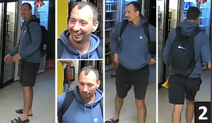 Podczas ataku był ubrany w niebieski sweter marki Adidas, czarne szorty i czarne sandały, a przy sobie miał czarny plecak marki Nike. Policja udostępniła szczegółowe opisy wraz ze zdjęciami i nagraniami wideo, które mają pomóc w identyfikacji obu mężczyzn.