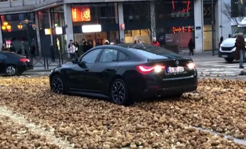 Jedna z najbardziej symbolicznych scen miała miejsce w chwili, gdy protestujący wysypali całą przyczepę ziemniaków bezpośrednio na jezdnię alei Louise. Wśród usypanego kopca bulw utknął samochód osobowy, którego kierowca nie był w stanie ruszyć z miejsca. Mężczyzna wysiadł z pojazdu i, ku zdumieniu przechodniów, zaczął ręcznie odgarniać ziemniaki, próbując własnymi siłami uwolnić auto z blokady. Nagrania z tego zdarzenia szybko zaczęły krążyć w internecie jako jeden z najbardziej wymownych obrazów protestu.