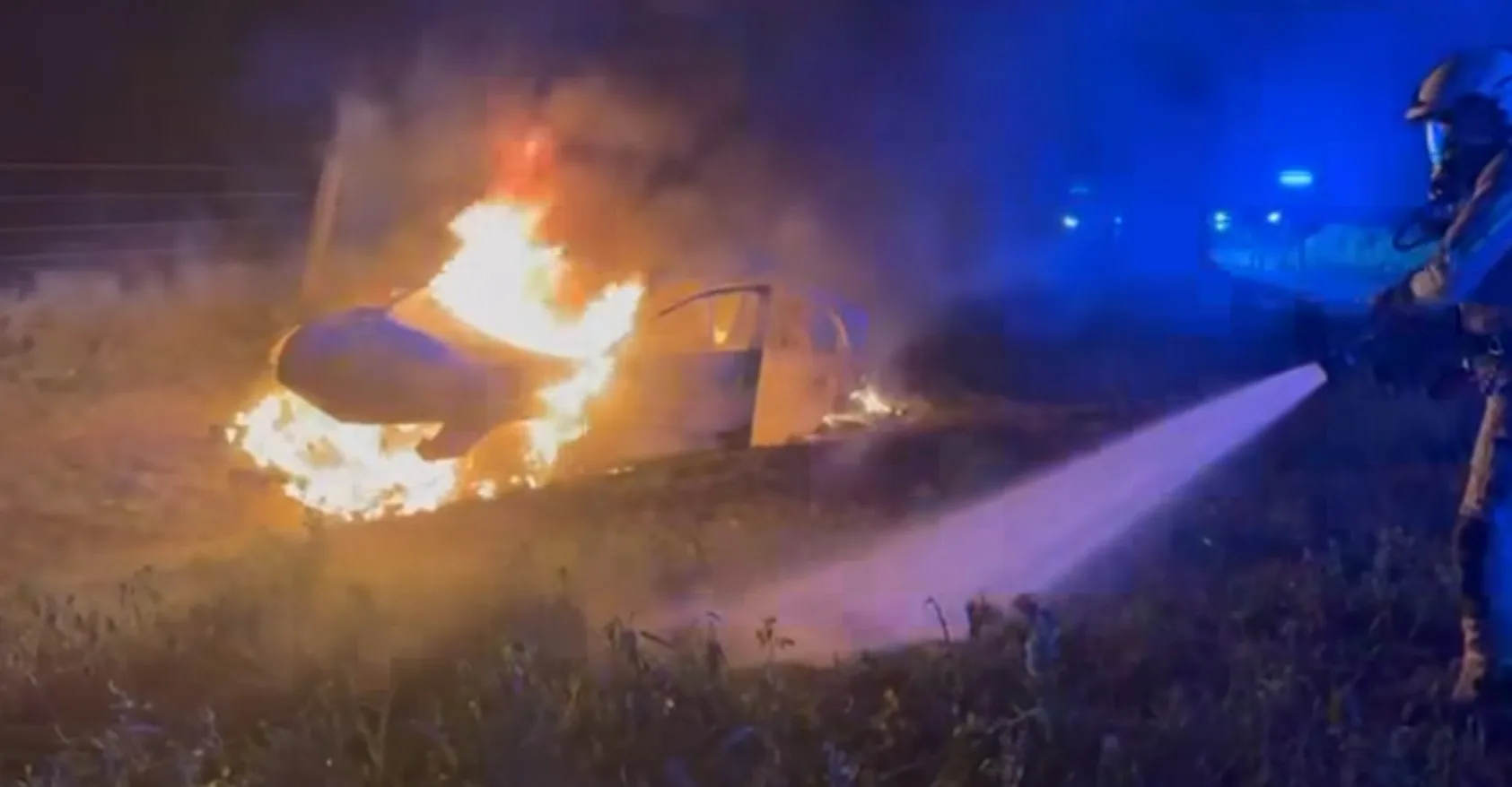 Straż pożarna została zaalarmowana około godziny 23:15 po zgłoszeniach od okolicznych mieszkańców, którzy słyszeli głośny huk przypominający detonację oraz zauważyli intensywne błyski światła. Początkowo sądzono, że w okolicy odpalane są fajerwerki. Po przybyciu na miejsce służby szybko ustaliły jednak, że na oddalonej od zabudowań drodze polnej płonie samochód.
