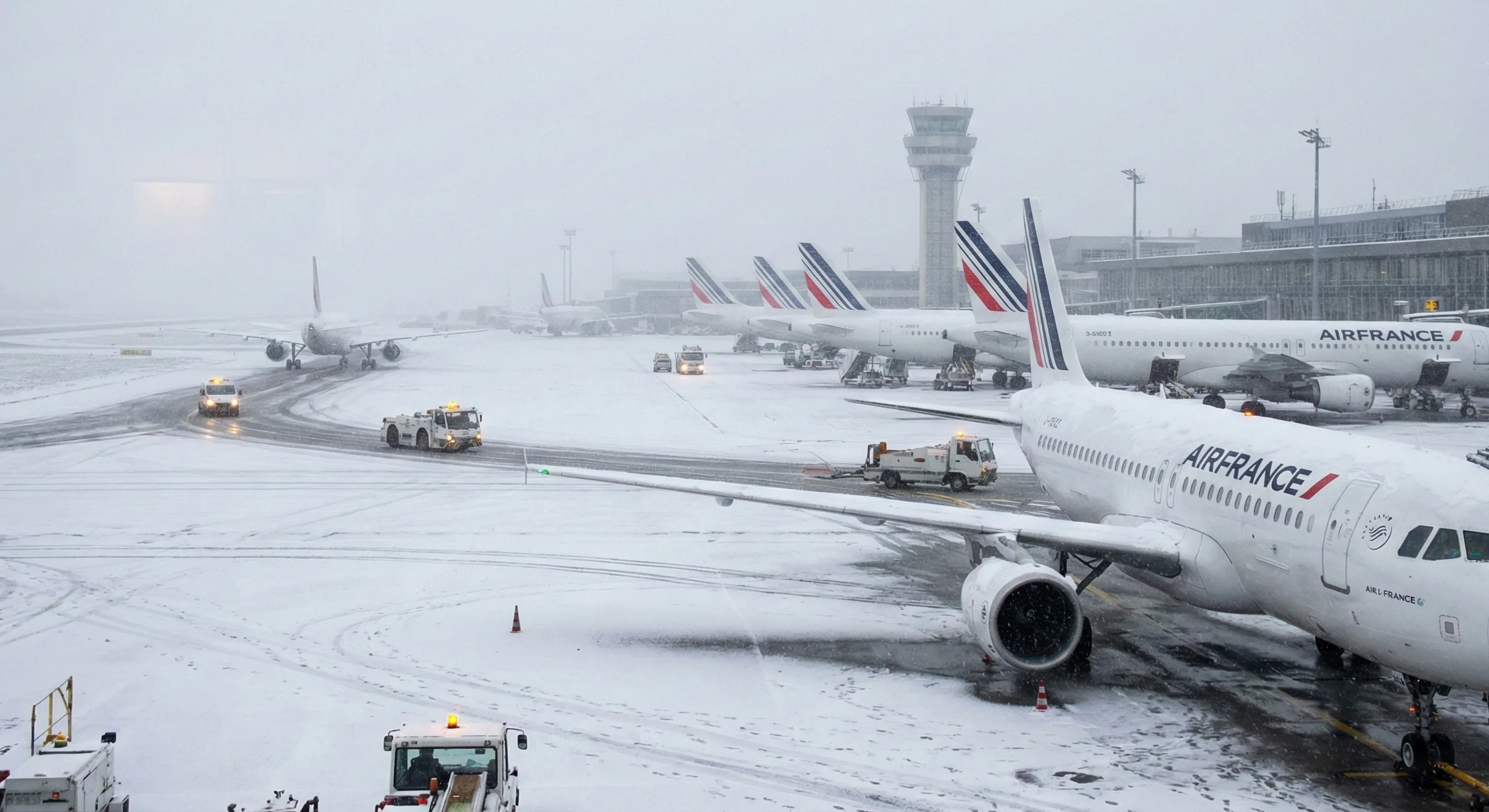 Intensywne opady śniegu, które wystąpiły we wtorkowy poranek, poważnie zakłóciły funkcjonowanie transportu lotniczego i drogowego w regionie paryskim. Jak poinformował francuski minister transportu Philippe Tabarot, na dwóch największych lotniskach Francji – Roissy Charles-de-Gaulle oraz Orly – odwołano łącznie około stu lotów. Niekorzystne warunki atmosferyczne zmusiły wiele samolotów do pozostania na płytach lotniskowych. Na zdjęciach z lotniska Orly, położonego na południe od Paryża, widać uziemione maszyny linii Air France.