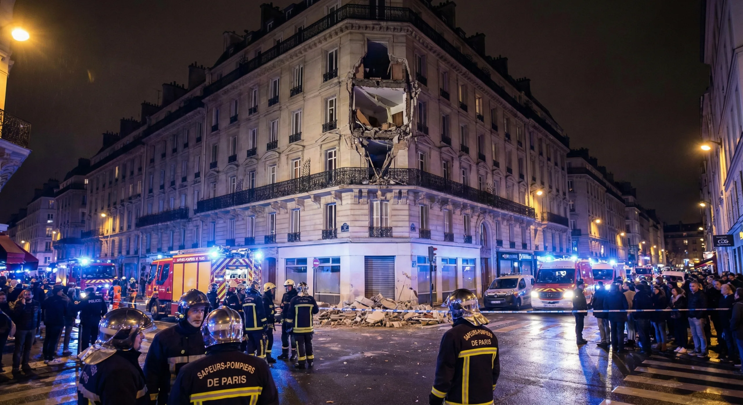 Zgłoszenie o zawaleniu się części budynku wpłynęło do paryskiej straży pożarnej krótko po północy. Jak ustalono, uczestnicy imprezy przebywali w mieszkaniu na piątym piętrze, które uległo zawaleniu i spadło na lokal położony piętro niżej. Według wstępnych informacji przekazanych przez służby ratunkowe przyczyna zdarzenia ma charakter strukturalny. Wykluczono natomiast związek katastrofy z ewentualnym wyciekiem gazu.