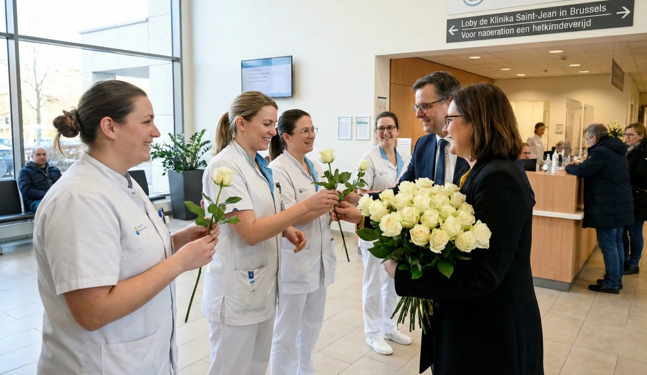 W sobotę 14 lutego 2026 r. stowarzyszenie broniące języka niderlandzkiego Vlaamse Volksbeweging (VVB), wspólnie z dwiema flamandzkimi organizacjami działającymi w Brukseli – Vlaams Artsenverbond oraz Vlaams Comité Brussel – przekazało personelowi brukselskiej Kliniki Saint-Jean 112 białych róż. Ten symboliczny gest miał wyrazić uznanie dla wieloletnich starań placówki o zapewnienie pacjentom możliwości kontaktu i leczenia również w języku niderlandzkim. Szpital od ponad 15 lat zatrudnia trenera językowego oraz organizuje dla pracowników kursy niderlandzkiego.