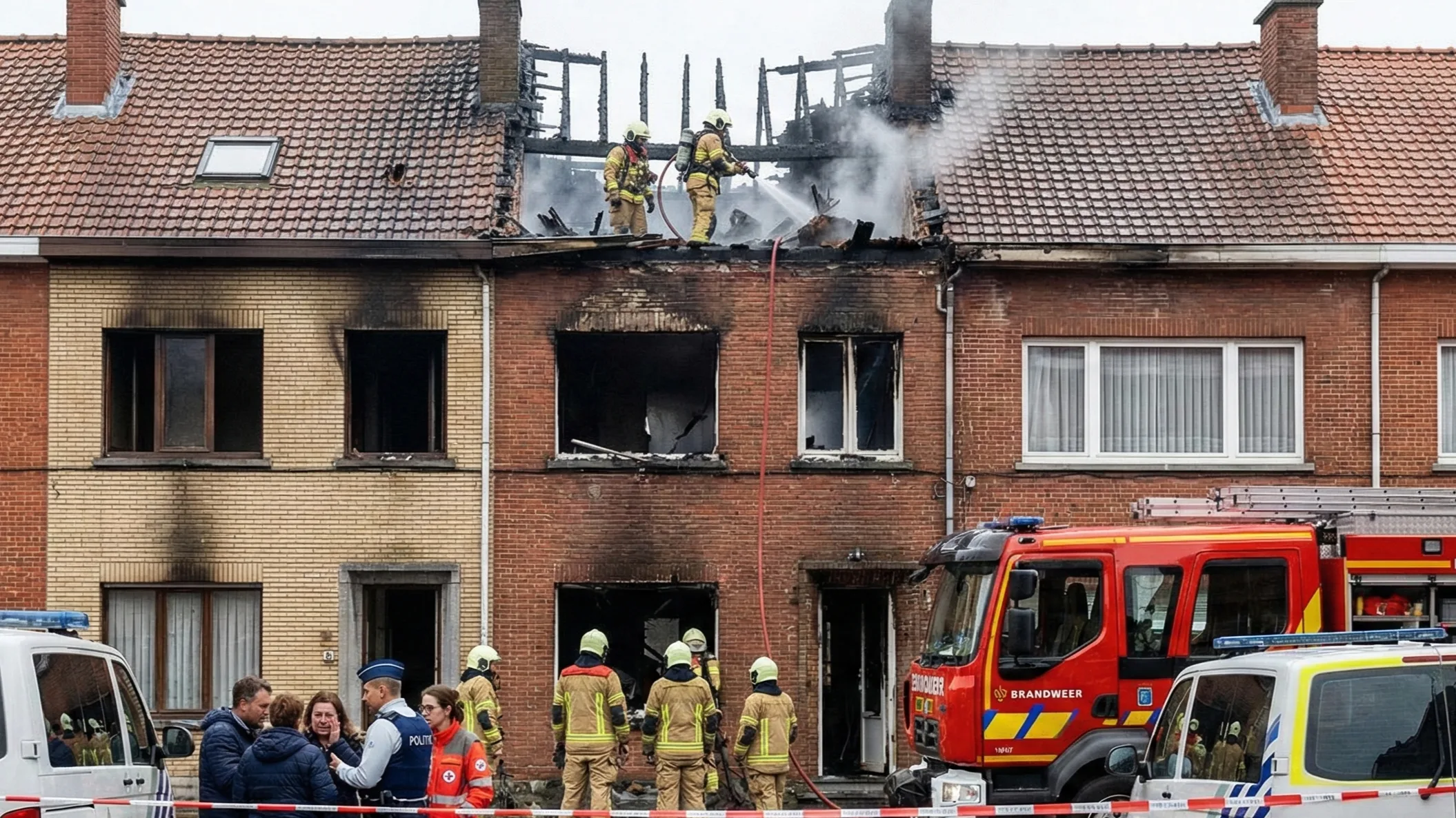 Rzecznik straży pożarnej Walter Derieuw poinformował, że w chwili przybycia służb ogień był już w pełni rozwinięty i obejmował garaż na parterze. Mieszkańcy zdołali jednak samodzielnie opuścić budynek jeszcze przed przyjazdem strażaków, dzięki czemu uniknięto poważniejszych konsekwencji. Strażacy szybko opanowali sytuację, lecz zniszczenia okazały się na tyle poważne, że dom nie nadaje się obecnie do zamieszkania. Lokatorzy znaleźli tymczasowe schronienie u rodziny.