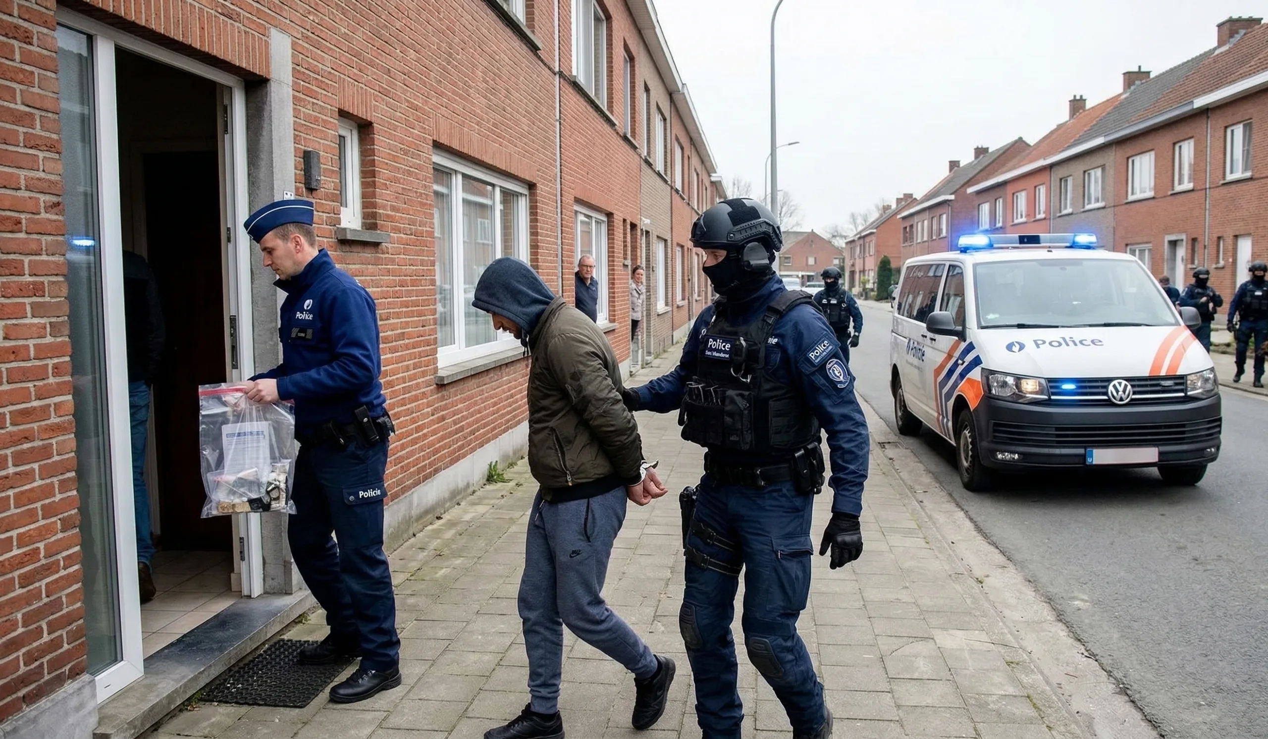 Kulminacyjny etap operacji nastąpił wczesnym rankiem 3 marca 2026 r. Na polecenie sędziego śledczego funkcjonariusze przeprowadzili 19 przeszukań w różnych miejscach we Flandrii, między innymi w Sint-Niklaas, Deinze, Sint-Martens-Latem, Zottegem, Bekkevoort, Kinrooi, w Ostendzie, w Gandawie i w Antwerpii. W wyniku tych działań zatrzymano 11 podejrzanych.