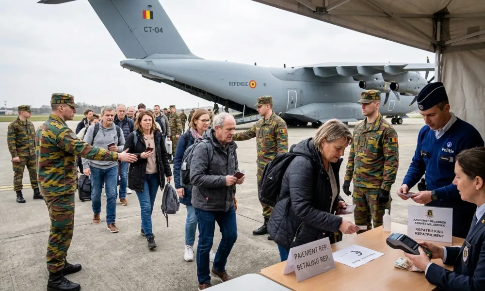 Belgijscy obywatele zablokowani na Bliskim Wschodzie, którzy skorzystają z lotów repatriacyjnych organizowanych przez belgijskie siły zbrojne (Défense/Defensie), będą musieli zapłacić za przelot 600 euro od osoby. Kwotę tę ogłosił w czwartek 5 marca 2026 r. minister spraw zagranicznych Maxime Prévot podczas posiedzenia plenarnego Izby Reprezentantów (Chambre/Kamer).