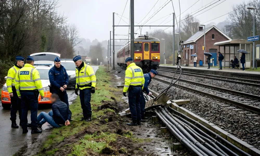 Wizualizacja SI - Aktualnosci.be W piątek 20 marca 2026 r. rano doszło do poważnych zakłóceń w ruchu kolejowym na trasie między Charleroi a Namur. Na odcinku pomiędzy stacjami Moustier i Jemeppe-sur-Sambre wstrzymano kursowanie pociągów w obu kierunkach. Jak poinformował zarządca infrastruktury kolejowej Infrabel, przyczyną była próba kradzieży kabli należących do infrastruktury kolejowej. Pasażerowie korzystający z tej linii musieli przygotować się na opóźnienia oraz zmiany w organizacji ruchu.
