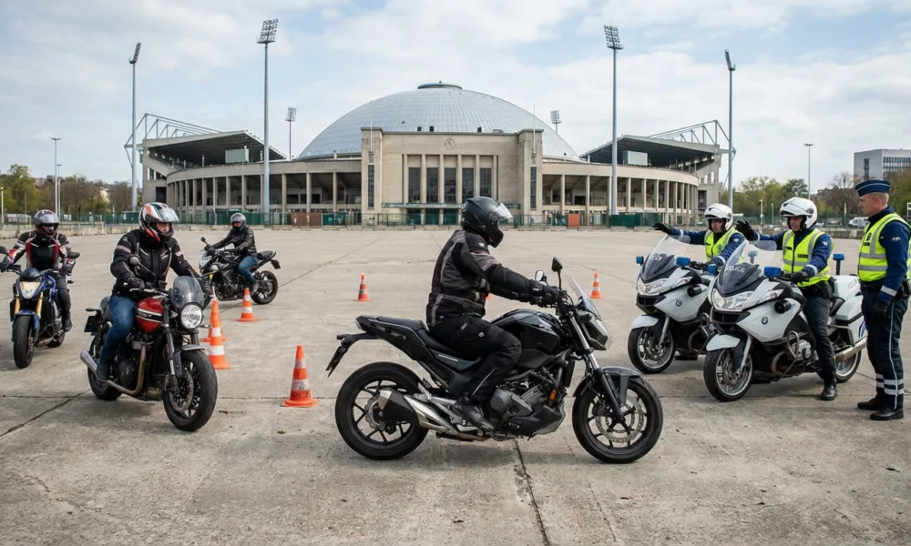 Wizualizacja SI - Aktualnosci.be Wraz z nadejściem pierwszych cieplejszych, słonecznych dni na belgijskie drogi wracają tysiące motocyklistów. Z tej okazji flamandzka organizacja Vlaamse Stichting Verkeerskunde (VSV), we współpracy z rządem Flandrii, zorganizowała coroczny Dzień Motocyklisty – wydarzenie poświęcone przypomnieniu i doskonaleniu techniki jazdy. W niedzielę 29 marca 2026 r. jednym z ponad dwudziestu punktów szkoleniowych była esplanada przy Stadionie Króla Baudouina na Heizel w Brukseli. Uczestnicy mogli tam bezpłatnie skorzystać z porad policji oraz przećwiczyć najważniejsze manewry.