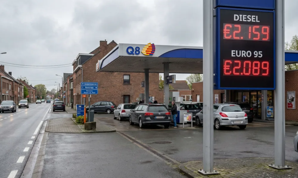 Wizualizacja SI - Aktualnosci.be Po ustanowieniu nowego rekordu we wtorek ceny oleju napędowego na belgijskich stacjach paliw ponownie wzrosły w środę 1 kwietnia 2026 r. – poinformowało Federalne Ministerstwo Gospodarki (SPF Economie). Litr oleju napędowego B7 podrożał o 0,2 centa i osiągnął maksymalną cenę 2,335 euro. W przypadku oleju napędowego B10 maksymalna cena wynosi obecnie 2,325 euro za litr, co oznacza wzrost o 0,003 euro. Jednocześnie na rynkach surowcowych odnotowano wyraźny spadek cen ropy naftowej po wypowiedziach prezydenta USA Donalda Trumpa dotyczących sytuacji z Iranem.
