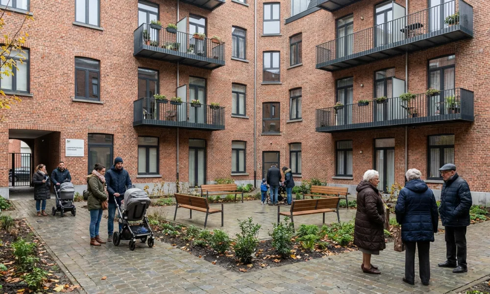 Wizualizacja SI - Aktualnosci.be W środę na Schaerbeek oficjalnie oddano do użytku 41 odnowionych mieszkań socjalnych w dzielnicy Helmet. Prace objęły dziewięć budynków położonych pomiędzy chaussée de Helmet, rue Van Droogenbroeck i rue Séverin. Inwestycję, której realizacja rozpoczęła się na początku 2023 r., przeprowadziła spółdzielnia mieszkań socjalnych Foyer schaerbeekois. Oprócz modernizacji samych lokali przebudowano także przestrzeń wewnętrzną kwartału, tworząc nową strefę wspólną z zielenią oraz centralnym placem.