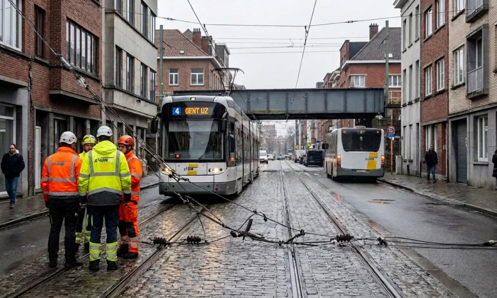 Wizualizacja SI - Aktualnosci.be Od środy rano w Gandawie ponownie kursują tramwaje na jednej z najbardziej obciążonych tras – linii 4. We wtorek przed godziną 11:00 ciężarówka uszkodziła sieć trakcyjną w rejonie dzielnicy Muide, powodując poważne utrudnienia w ruchu. Wieczorem De Lijn poinformował, że naprawa została zakończona, a przejazdy testowe przebiegły bez problemów.
