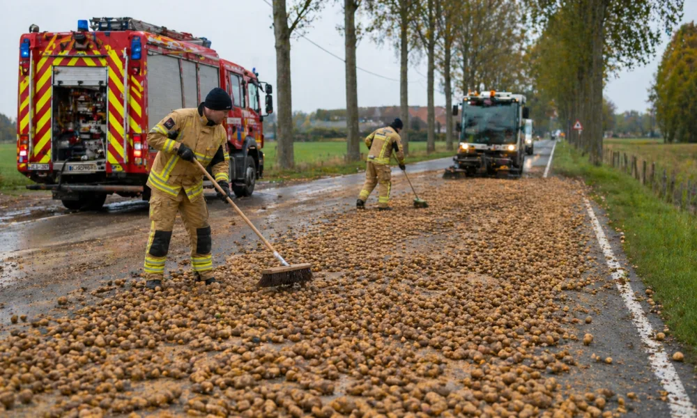 3 tony ziemniaków na drodze w Sijsele – strażacy sprzątają 600 metrów jezdni