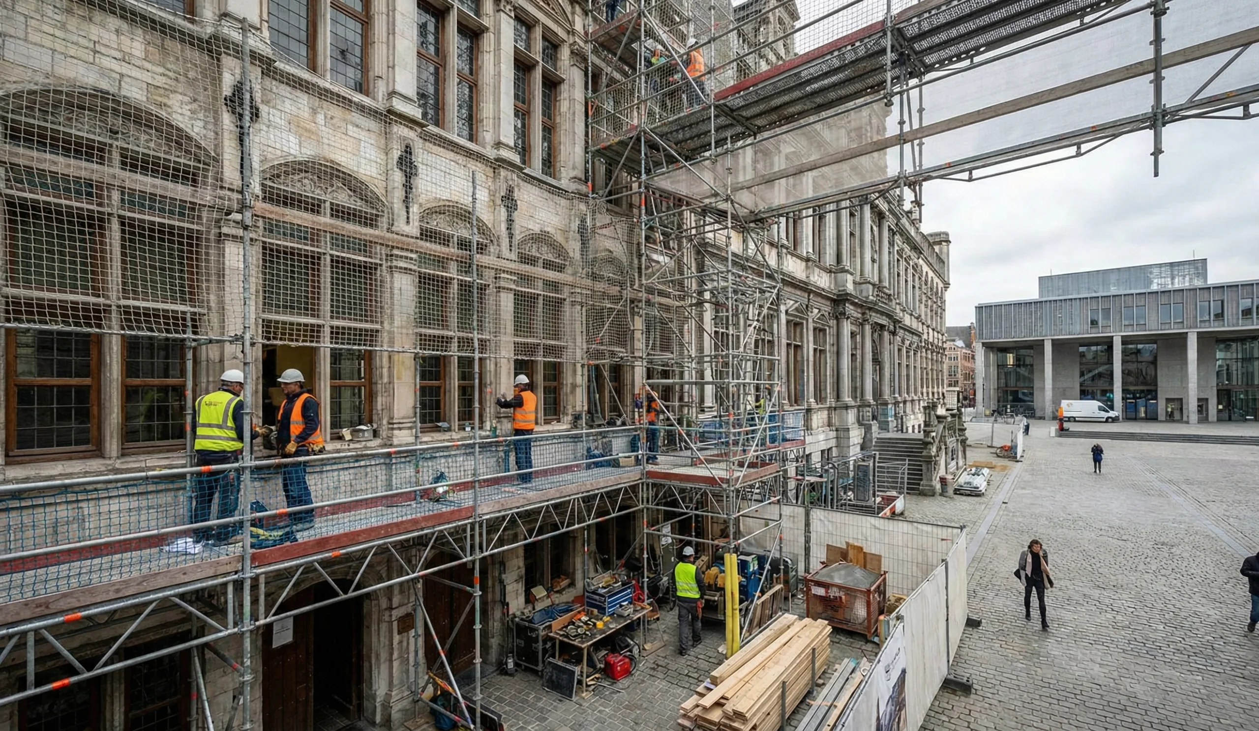 Zabytkowy ratusz w Gandawie ponownie został otoczony rusztowaniami. Władze...